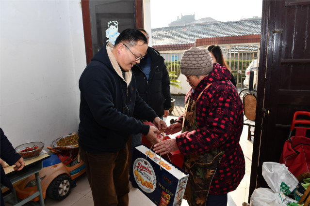 在塔港村党总支书记唐燕萍与党支部组织员朱姝的陪同下,林国新一行看望慰问了该村6户困难户,为他们送上了慰问金及春节礼品,带去了校党委的亲切关怀和新春祝福。