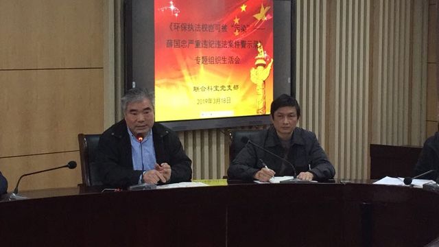 为进一步加强党员廉洁教育,根据区纪委组织观看《环保执法权岂可被“污染”——薛国忠严重违纪违法案件警示录》的工作要求,3月18日,联合科室党支部开展以廉政警示教育为主题的专题组织生活会,会议由支部书记江四龙主持。