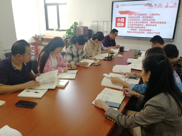 杜海燕带领大家学习《习近平关于“不忘初心、牢记使命”论述摘编》第三、第四章,希望大家真正做到守初心、担使命,找差距、抓落实,更好地用习近平新时代中国特色社会主义思想武装头脑、指导实践、推动工作。大家仔细聆听,纷纷认真做起了笔记。