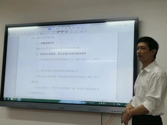 江四龙指出,本次党支部换届选举工作从10月上旬启动,到11月底全部结束。换届选举工作实施公推直选制度。公推,即采用党员推荐、群众推荐、组织推荐相结合的方式,推荐党支部书记和委员候选人;直选,即通过支部党员大会直接选举产生党支部书记和委员。江四龙强调,支部党员要统一思想,提高认识,以积极、严肃、认真的态度投入到换届选举工作中去。