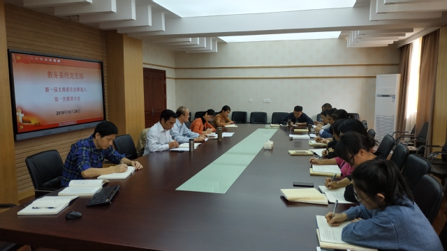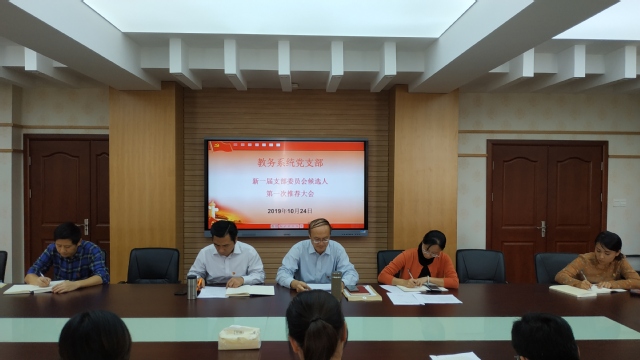 10月24日下午,教务系统全体党员在办公楼三楼会议室召开教务系统党支部新一届支部委员会候选人第一次推荐大会,会议由支部书记朱文俊主持。