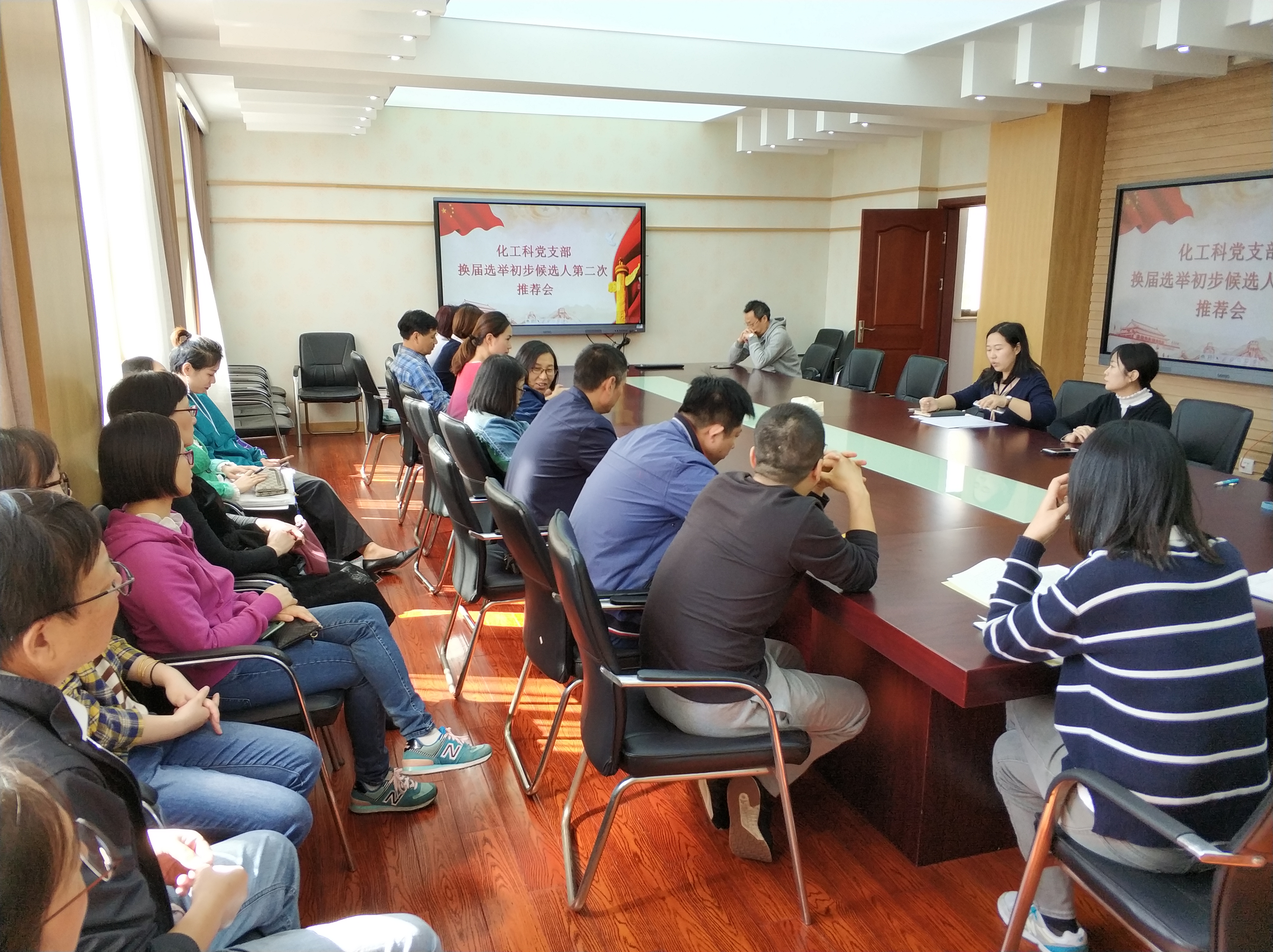2019年11月6日中午12点20分,化工科全体党员、民主党派人士、群众代表在办公楼三楼会议室召开换届选举第二轮推荐会,会议由支部书记李娟主持。