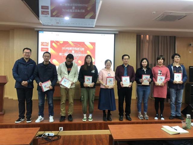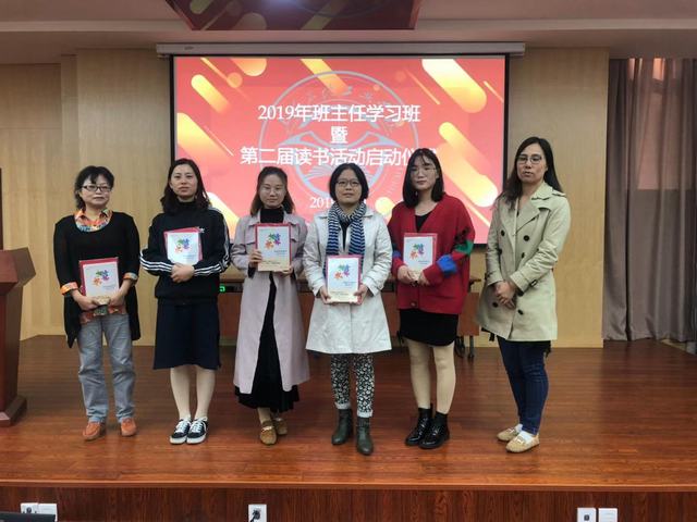 杜海燕、杨立群、江军花、唐辰炜为化工、机电、经贸参加第二届班主任读书活动的二十三位老师赠送了家庭教育指导书籍。