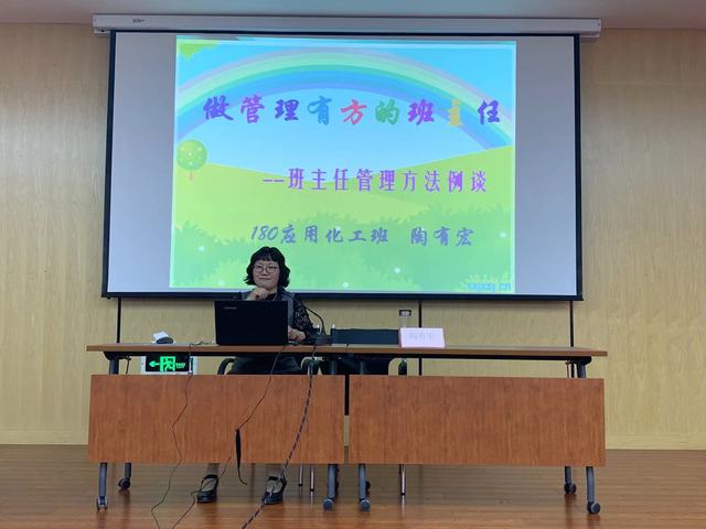 我校语文高级讲师陶有宏开设《如何创建优秀班集体》专题讲座。陶有宏有丰富的班级管理经验,更有深厚的文化修养,她结合自己班级管理的真实案例,与大家交流如何把班级 “危机”转化为教育“契机”。陶有宏爱好阅读,节假日经常是在图书馆度过,她阅读了诸多教育类书籍,并把教育家的名言、育人理念落实到班级管理实践中。班主任是班级工作的组织者,是学生全面健康成长的“导师”,班主任对一个班集体的发展和建设起着至关重要的作用。在创建一个良好班集体的过程中,班主任首先要严格管理好自己,用人格魅力征服学生,及时刹住班级中出现的不良苗头,善于发现学生的闪光点,树立学困生的自信心,多方寻求教育途径,赢得家长和任课老师的配合。陶有宏用生动风趣的语言,真实地再现了事例的处理方法,让大家在轻松的氛围里学习了班级管理的技巧。