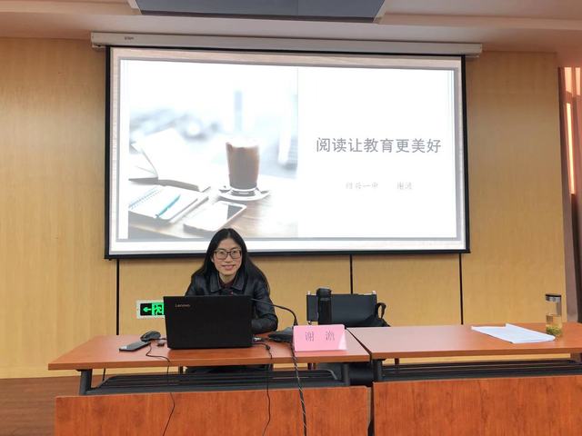 杜海燕向大家介绍了此次开设讲座的绍兴市特级语文教师、五一劳动奖状获得者谢澹老师。杜海燕指出教师专业成长的路径很多,但最持久、最扎实有效的一定是读书。读书是教师专业发展的基石和源头活水,如果没有教师的阅读,就没有教师真正意义上的成长与发展。