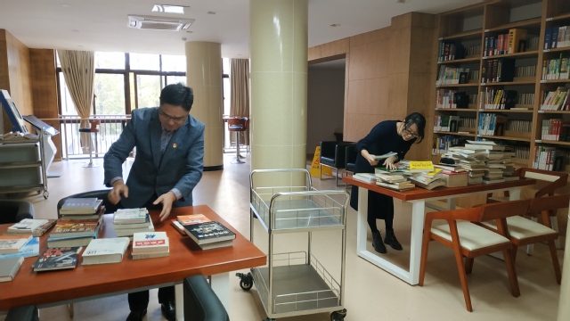 教务系统党支部党员两个小组分别利用中午休息时间来到学校图书馆开展志愿者活动,党员们的主要工作是协助图书馆工作人员整理书籍,贴标签等各种工作。党员们对1000多册图书进行整理和加工,给书籍贴上RFID标签。这些工作也看似很简单,但是实际做下来不仅要求我们在贴的标签要距书底一定距离,而且和馆藏章的位置不能覆盖等等很多细致的要求。