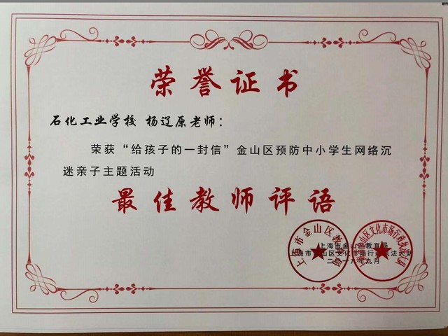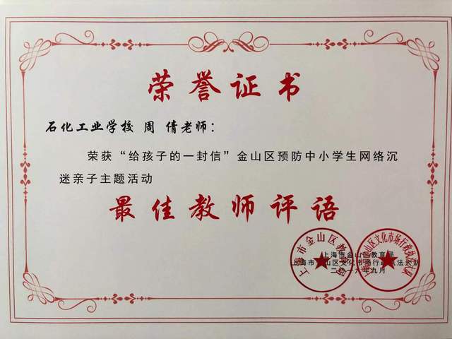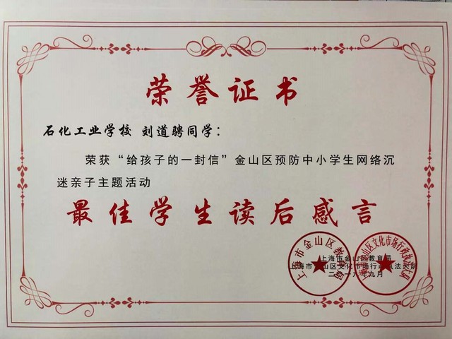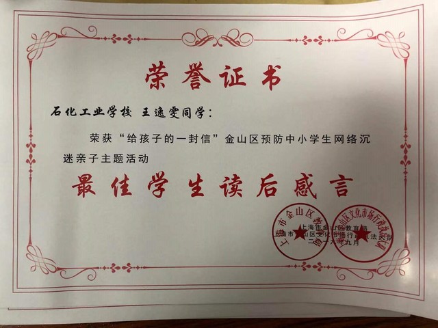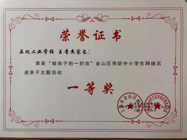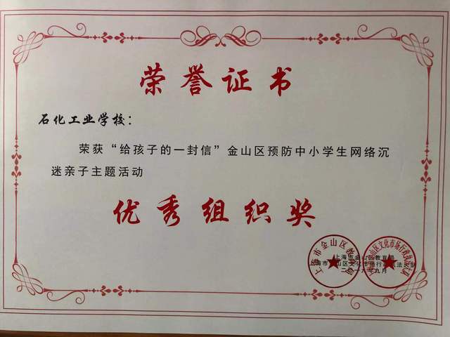 金山区组织的2019年预防中小学生网络沉迷亲子主题活动结果揭晓,我校获得“优秀组织奖”,师生以及家长获得优异成绩。