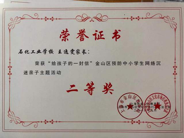 我校周倩、杨辽原获得“最佳教师评语奖”;丁伊雯、刘道骋、王逸雯、王晋杰、胡智源获得“最佳学生读后感言奖”;“给孩子的一封信”中王晋杰家长获得一等奖,王逸雯家长获得二等奖,胡智源家长、丁伊雯家长、刘道骋家长获得三等奖。我校师生和家长在如何合理使用网络方面达成高度共识,建立起家校沟通的桥梁,多方协作助力学生健康成长。