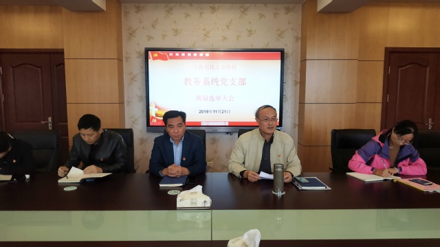 为深入贯彻落实党的十九大精神,积极推进党内民主建设,充分发挥基层党组织领导核心作用,根据《中国共产党章程》、《中国共产党基层组织选举工作暂行条例》和市委、区委、区教育工作党委的有关规定,按照校党委的统一部署,11月21日,教务系统党支部于四楼会议室召开换届选举党员大会。会议由支部书记朱文俊主持。