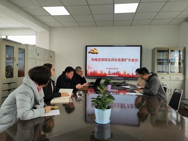 根据金山区教育工作党委《关于基层党组织召开2019年度专题组织生活会和开展民主评议党员的通知》(金教工委〔2019〕23号)的有关要求,机电科党支部于12月5日中午,在明德楼401室召开机召开支委扩大会议,支部委员、党小组组长及机电科党员干部参加会议,会议由支部书记俞婕主持。