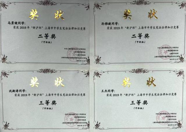 我校参赛选手孙雅婕、马勇健、沈澌涛、王杰,在10月26日举办的复赛中经过激烈角逐,闯入决赛。孙雅婕和马勇健获得市级个人二等奖,沈澌涛和王杰获得市级个人三等奖。各校师生代表、啦啦队员精心准备了朗朗上口的口号,为参赛队员鼓舞士气。决赛分为个人必答题、抢答题和视频案例题三个环节,我校代表队在各环节拼尽全力,比分紧追不舍,他们出色的表现和沉稳的台风展示了我校学生扎实的宪法功底及良好的法律素养。最终我校以总分第二的成绩获得团体银奖,为我校和金山区争得了沉甸甸的奖杯。