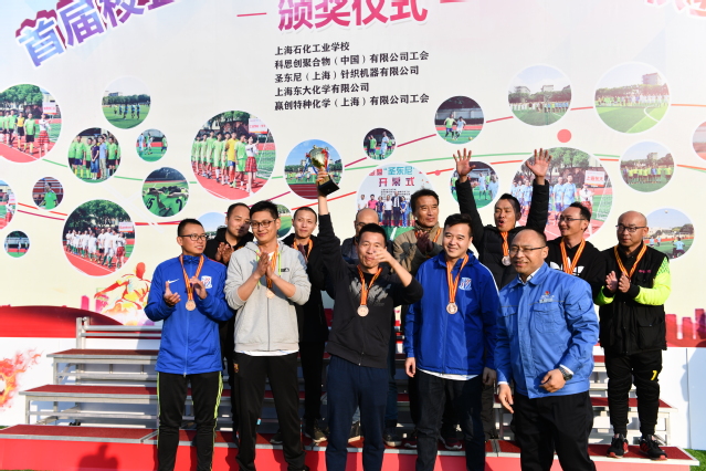 三个月来,6支参赛队伍十分重视本次足球联赛,大家认真组队、训练、比赛;比赛中,各代表队本着友谊、健康、参与的宗旨,充分发扬了敢于拼搏、勇于进取的竞技精神,赛出了风格和水平,展示了自我形象,赢得了对手尊重,有力地展示出参赛单位团队意识、竞争意识、拼搏精神,彰显出积极向上的精神风貌。最终,经过激烈的角逐,科思创聚合物(中国)有限公司工会以总积分15分的优势勇夺冠军,上海石化工业学校(学生队)以4个净胜球的优势获得了亚军,赢创特种化学(上海)有限公司工会获得季军;圣东尼(上海)针织机械有限公司、上海石化工业学校(教工队)、上海东大化学有限公司三个代表队获得竞赛风尚奖。