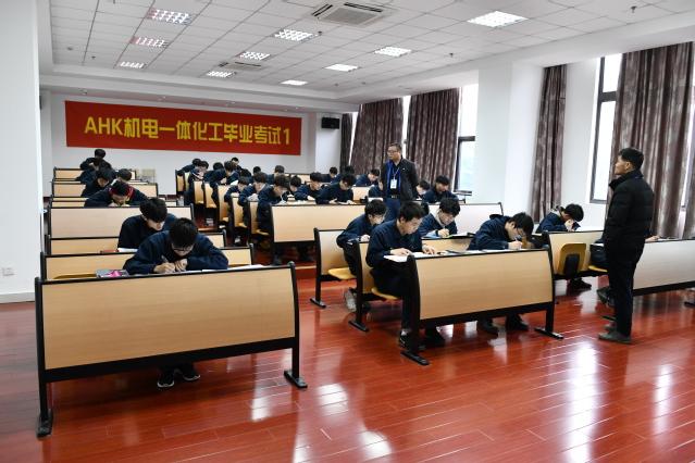 12月18-19日,我校机电科机电技术应用专业171机电01(AHK圣东尼国际)班在经过二年的培养后,迎来机电一体化工毕业考试1模块。考试严格按照德国AHK职业资格认证考试要求组织进行,由AHK委派主考官到我校主持实施,分理论考试和实操考试两部分。