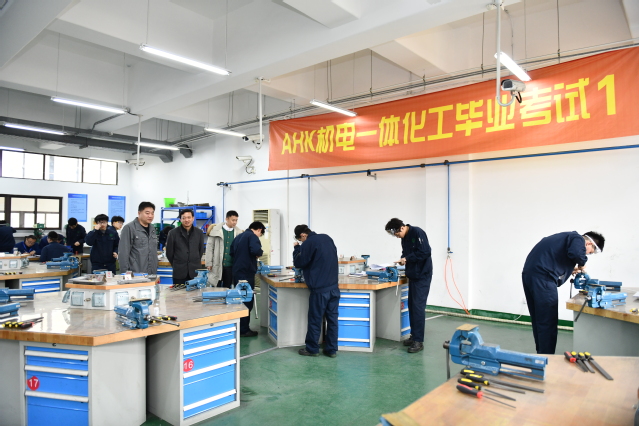 AHK机电一体化工毕业考试1实施工作是机电科本学期重点工作内容,机电科高度重视此项工作,根据教学计划,从本学期第11周起进入考试准备阶段,全体学生在18日完成实践部分(6.5小时)的考试内容,包括机械系统零部件加工、装配及调试、电气控制系统的连接与调试等任务,19日完成理论部分(1.5小时)的考试,顺利完成毕业考试1的全部考核内容。