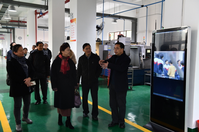 在校领导的陪同下,陆文元一行来到学校校史馆、化工与人类科普展示馆、跨企业培训中心、数控开放实训中心和化工综合实训大楼开展实地调研,详细了解学校发展历程、学生教学实训等实际情况,对学校发展取得的成效给予高度评价。