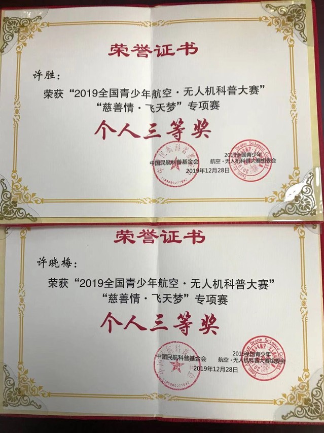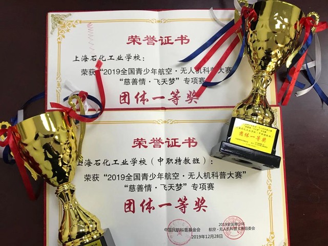 经过一个月的评选,上海石化工业学校在1月中旬举行的“2019年全国青少年航空.无人机科普大赛”颁奖典礼上斩获佳绩。两个团队均以最优的成绩获得“上海市团队一等奖”。181旅游02班朱皓奕同学以20秒的优异成绩获得上海市一等奖。171旅游02班徐春健、曹佳伟,191旅游02班唐佳雯、姜文俊,181旅游02班凌忠杰等同学分别获得上海市二等奖。181旅游02班许晓梅、171旅游02班许胜兄妹两人克服自身听力及言语障碍,在第一次参加市级比赛中也获得上海市三等奖的好成绩。