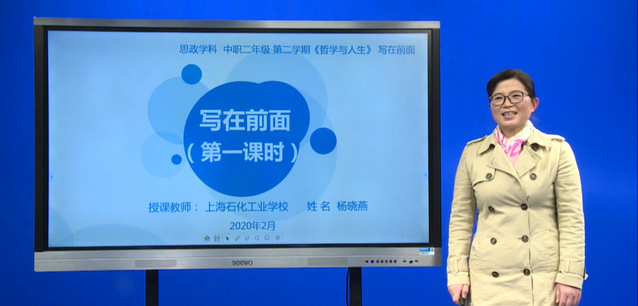 一场疫情使得2020年的春天似乎到来的有些晚。在全国人民抗击新冠疫情的时刻,全国教育工作者也在为新学期的开学工作忙碌准备着。“停课不停教,停课不停学”是特殊时期教师履行职责的宣言。上海市出台的《上海市中等职业学校网上教学指导方案》中指出,中职学校一、二年级思想政治由市教委提供统一课程资源。上海市教委教研室以学科为单位、市教研员牵头,组建中职网络视频课创作团队。我校德育组杨晓燕老师接到《哲学与人生》课程“写在前面”“即“序言”的录制任务。