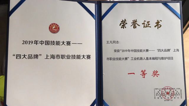 日前,市人社局、财政局、教委、经信委、国资委、总工会、团市委发布《关于表扬2019年中国技能大赛——“四大品牌”上海市职业技能大赛获奖选手和为参赛工作做出突出贡献的个人及单位的决定》,对“四大品牌”技能大赛的获奖选手和为参赛工作做出突出贡献的个人和单位予以通报表扬。我校王凡老师和鄢熔熔老师取得了工业机器人基本编程与维护赛项的前两名,分别获得一等奖和二等奖。同时,也助力组织参赛的金山区人社局赢得团体银奖和优秀组织奖。