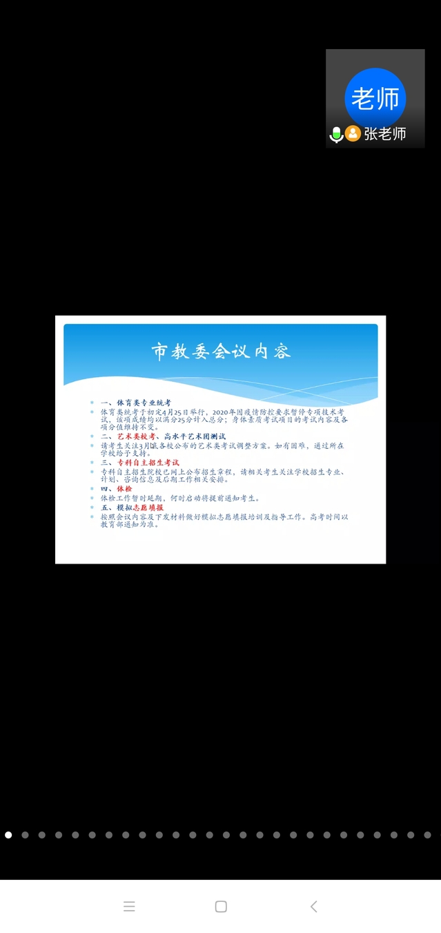 教务处副主任张海霞就3月底各校公布的艺术类考试调整方案做了强调,还就专科自主招生考试相关要求,告知相关考生关注学校招生专业、计划、咨询信息及后期工作相关安排。并完成了志愿填报培训及指导工作。