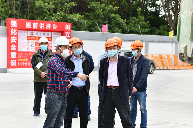 在北区建筑工地,校领导认真查看工地施工情况,要求一定要在做好防疫与安全工作的同时,确保工程的质量与进程。