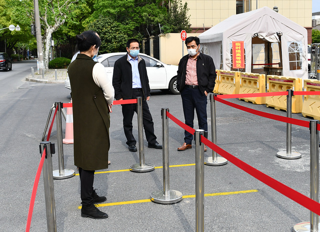 在学校北门检查临时隔离点情况时,校领导要求要严把车辆和人员出入的检查关,确保人员密集时候工作的有序与规范。