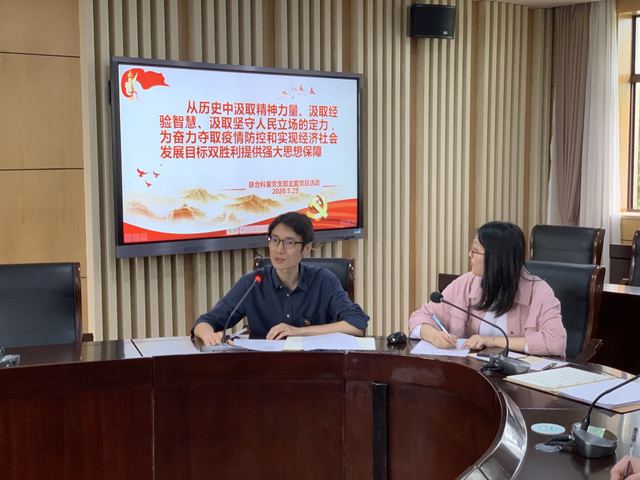 习近平总书记指出:“历史是最好的教科书,也是最好的清醒剂。”学好党史、新中国史、改革开放史、社会主义发展史,是党员、干部的一门必修课。5月29日,联合科室党支部以“从历史中汲取精神力量、汲取经验智慧、汲取坚守人民立场的定力,为奋力夺取疫情防控和实现经济社会发展目标双胜利提供强大思想保障”为主题开展主题党日活动。本次活动由支部书记刁小伟主持。