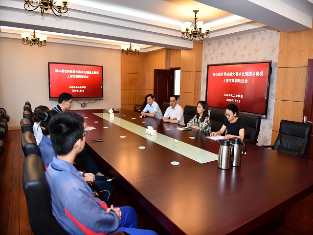7月6日一早,第46届世界技能大赛“水处理技术”赛项上海市集训欢送会在我校4楼会议室举行,高炬校长、黄汉军副校长、化工科科长严小丽及相关老师一起参会送行。