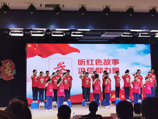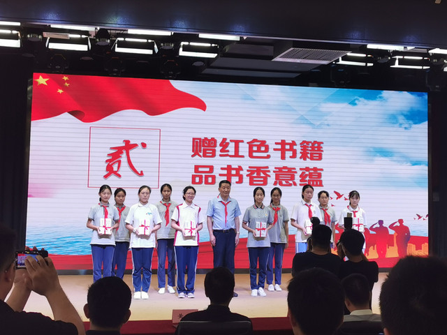 活动分为“品书香意蕴,烙红色印记”“赠红色书籍,品书香意蕴”“听红色故事,汲信仰力量”三部分。“咚隆隆”“咚隆隆”强而有力的鼓声掀开此次活动的序幕,舞台上,数十名小鼓手意气风发、精神抖擞,整齐划一、节奏分明的鼓声一下子使人精神振奋起来。来自金山区十数所学校的优秀学生团员代表依次上台,接受陶正明将军的亲手赠书,我校优秀学生团员代表杨姗上台领书,沉甸甸的红色书籍彰显红色精神,同学们接过红色书籍,神色肃穆起来,纷纷向陶将军致以崇高的敬意。