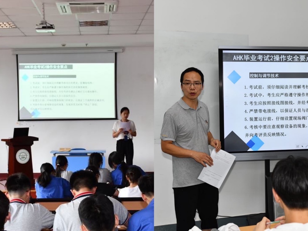 7月7日至8日,在AHK中德化工职业培训基地,培训教师对考生开展了考前安全教育,学生们认真聆听并记录下了所有考试相关的安全内容。