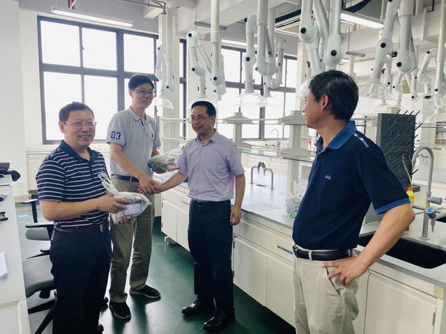 炎炎夏日,化工实训大楼实验室里,陈佳美和夏洋两位学生每天穿着白大褂、戴着护目镜与防护手套进行实验项目的调节与优化,旁边是悉心指导他们的几位教师,他们正在利用暑假为第46届世界技能大赛上海选拔赛“水处理技术”赛项紧张准备着。7月23日上午,高炬校长、黄汉军副校长慰问了参赛集训队师生。校领导一行详细询问了集训队准备现况,学校和科室非常重视此次的技能大赛准备工作,经过前期筛选组建了由优秀指导教师和参赛选手组成的竞赛团队,学校各部门全力配合为集训队暑期备赛做好后勤保障。