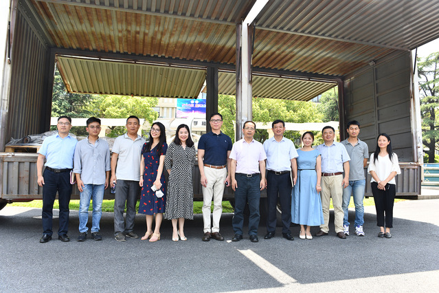 高炬代表学校接受科思创上海一体化基地的捐赠,并与基地HSEQ负责人吉文斌博士热情握手致谢。