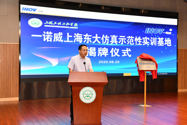高炬与徐军代表校企双方共同为“一诺威上海东大仿真示范性实训基地”揭牌。揭牌仪式上,一诺威集团还为新一期公司入职新员工进行了职前培训总结与表彰活动。