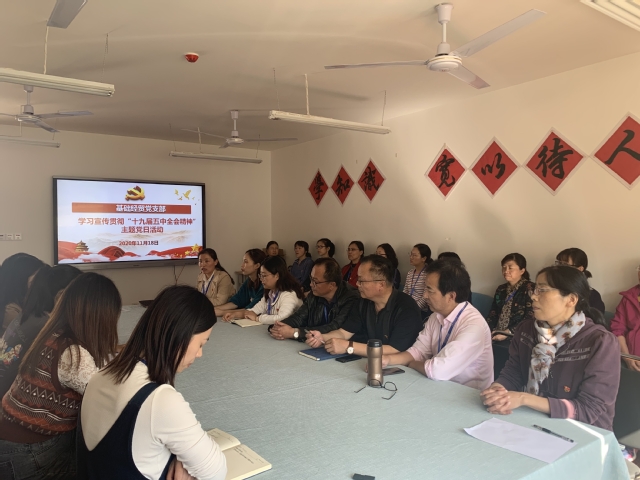 11月18日中午,基础经贸党支部在图书楼407室开展了“学习宣传贯彻党的十九届五中全会精神”主题党日活动,传达学习《中国共产党第十九届中央委员会第五次全体会议公报》《中共中央关于制定国民经济和社会发展第十四个五年规划和二〇三五年远景目标的建议》。会议由支部书记于燕娜主持,支部全体党员参加了此次主题党日活动。
