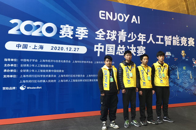 本次大赛由中国电子学会、上海市经济与信息化委员会、上海市闵行区人民政府指导,全球青少年人工智能联合会、百度智能云、百度云智学院主办,全球青少年人工智能竞赛中国组委会承办。我校181计算机班叶哲昊、高远、孙自恩和俞徐辰四人代表学校参赛。四位参赛选手从全国36支参赛队中脱颖而出,包揽了“奥运开幕式”项目高中组冠亚军。