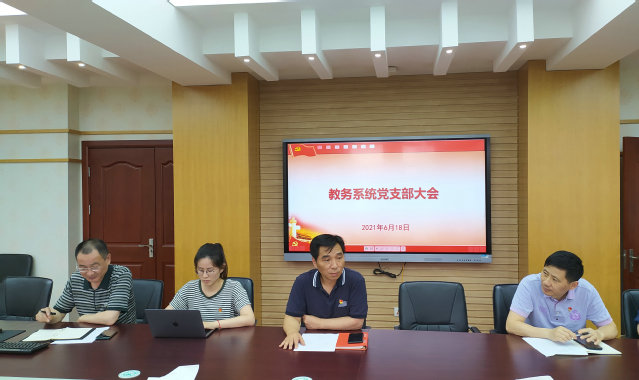 为进一步加强组织学习,不断提高党员思想政治素质,加强党员自身党性修养,教务系统党支部于6月18日在三楼会议室召开支部大会。与会党员聆听支部书记党史专题党课,并进行党史学习交流活动。