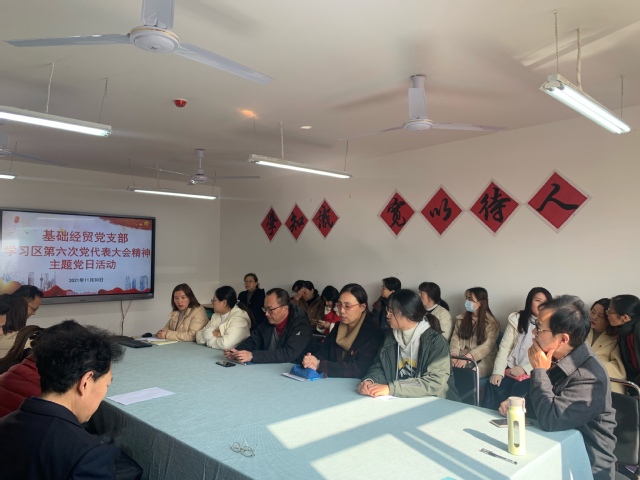 根据区教育工作党委和学校党委要求,基础经贸党支部于11月30日组织全体党员开展了学习中共金山区第六次代表大会精神的主题党日活动,活动由支部书记于燕娜主持。