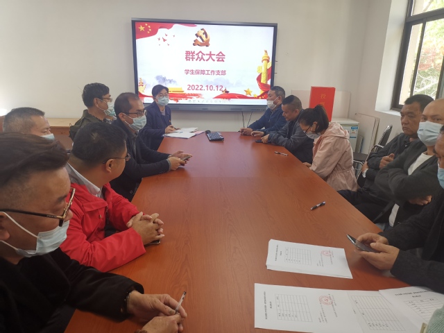 10月12日中午,学生保障工作党支部在明德楼201召开换届选举党内、党外群众第二次推荐会。支部全体党员和群众出席会议。支部书记杨晓燕主持会议。