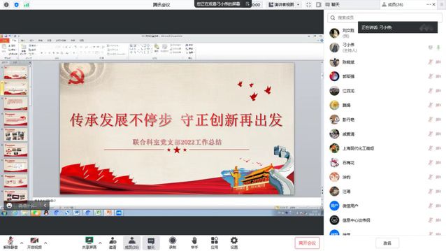 根据区教育工作党委下发的《关于开展2022年度落实全面从严治党主体责任述职评议考核的通知》要求,12月22日,联合科室党支部线上开展“战斗堡垒指数”考核评议工作。支部党员和6位群众代表和民主党派代表参会。会议由联合科室党支部书记刁小伟主持。