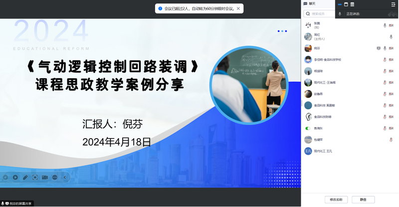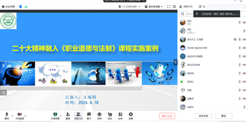 为进一步推进课程思政建设,4月19日,黄汉军名师工作室&周红名师工作室组织学员进行专业课程课程思政案例交流研讨活动。
