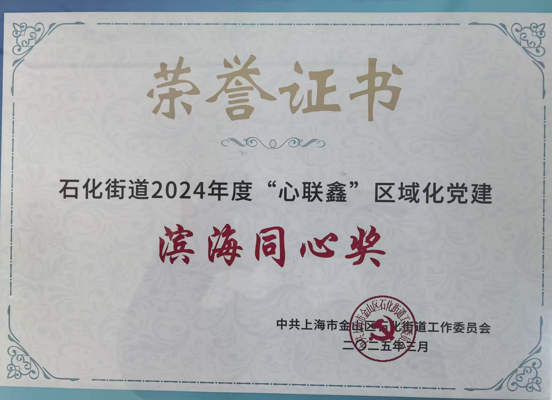 3月27日,石化街道2025年“心联鑫”区域化党建大会在金山区青少年活动中心小剧场举行。石化街道党工委对2024年度表现突出的结对共建单位给予表彰,我校荣获“滨海同心奖”。
