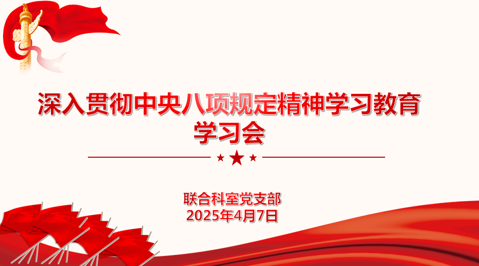 为扎实开展深入贯彻中央八项规定精神学习教育,不断把全面从严治党推向纵深,根据学校党委工作部署,4月7日,联合科室党支部召开专题学习会。会议由党支部书记刁小伟主持。