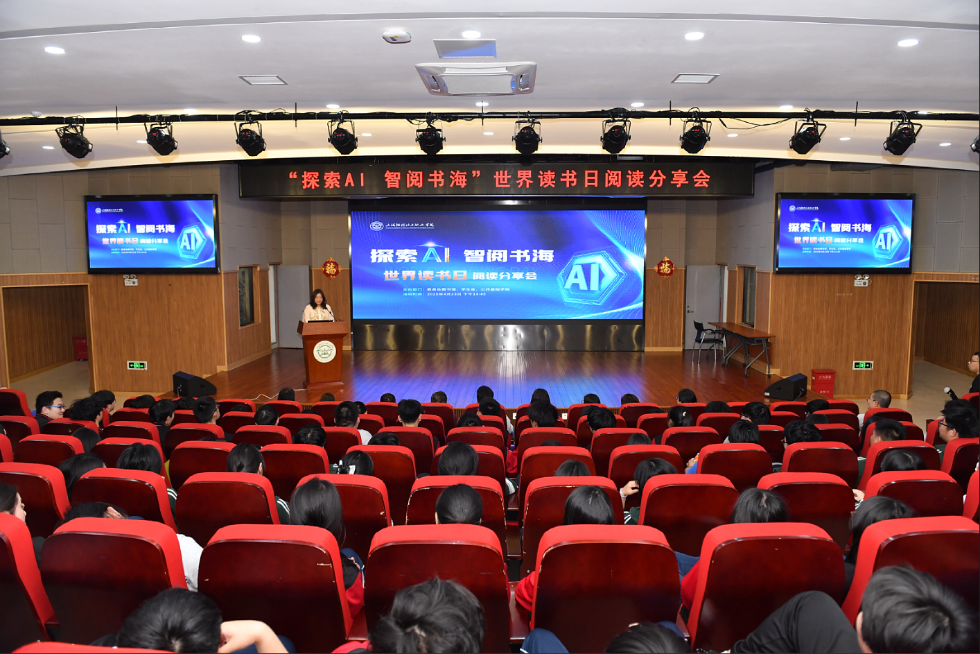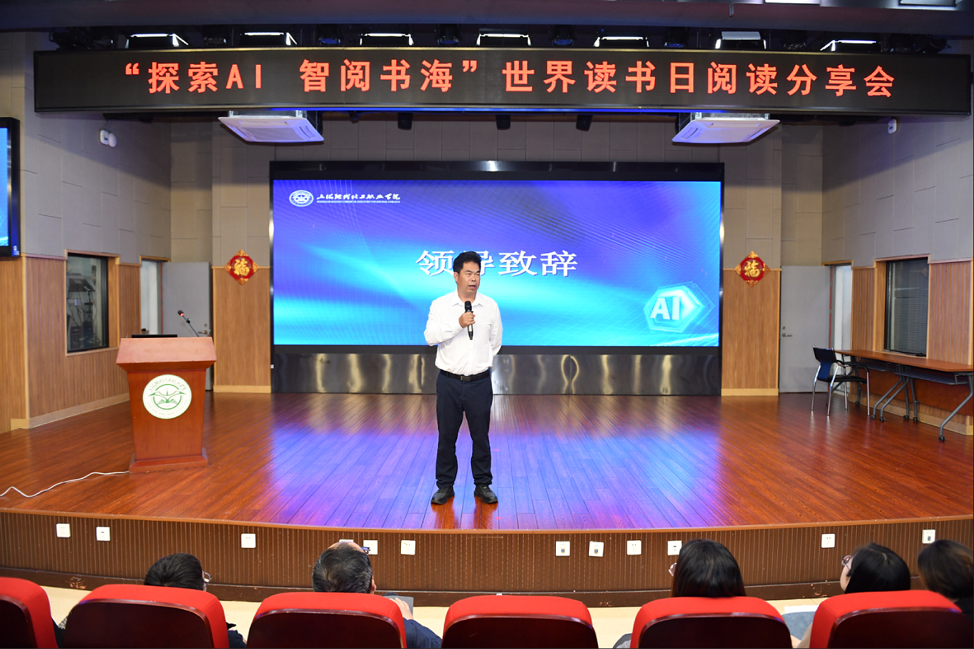 4月23日是第30个世界读书日,在此之际我校隆重举办“探索AI 智阅书海”阅读分享会。本次活动由教务处图书馆牵头,学生处、公共基础学院共同主办。校长陈晓斌、工会主席迮育彪、各二级学院负责人、师生代表300多人共同参与此次活动,活动由图书馆馆长王翊君主持。