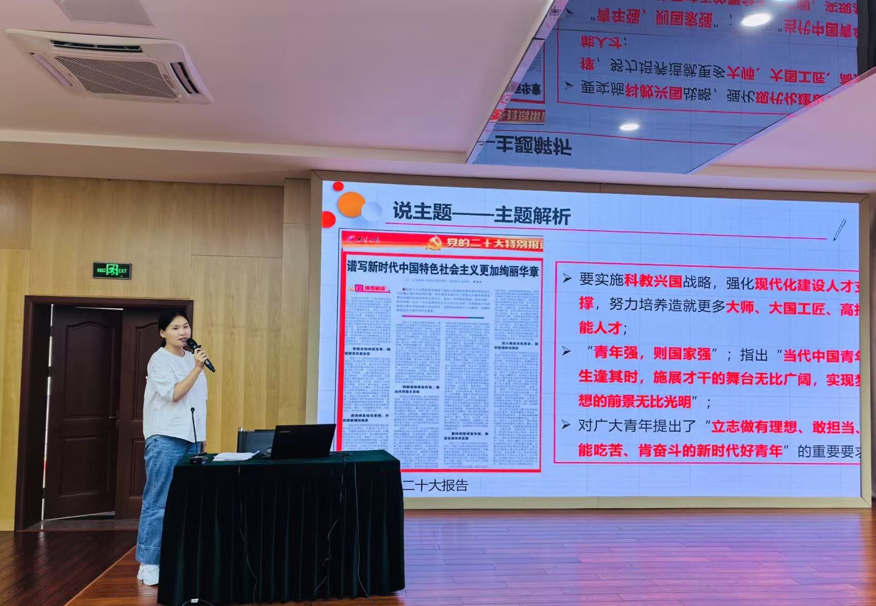 本次班会课说课活动以学习贯彻党的二十届三中全会精神为主题,经过前期学院推举,共有六位班主任老师进入现场展示环节,他们同台竞技,分享育人智慧。活动中,参赛班主任围绕主题进行班会设计,结合班级管理实际,从学情分析、目标设定、活动设计、预期效果等方面进行系统阐述,充分展现了扎实的专业素养和独特的育人风格。活动气氛热烈,成效显著。徐卫东区名师工作室成员陈小宁老师参与本次说课活动。