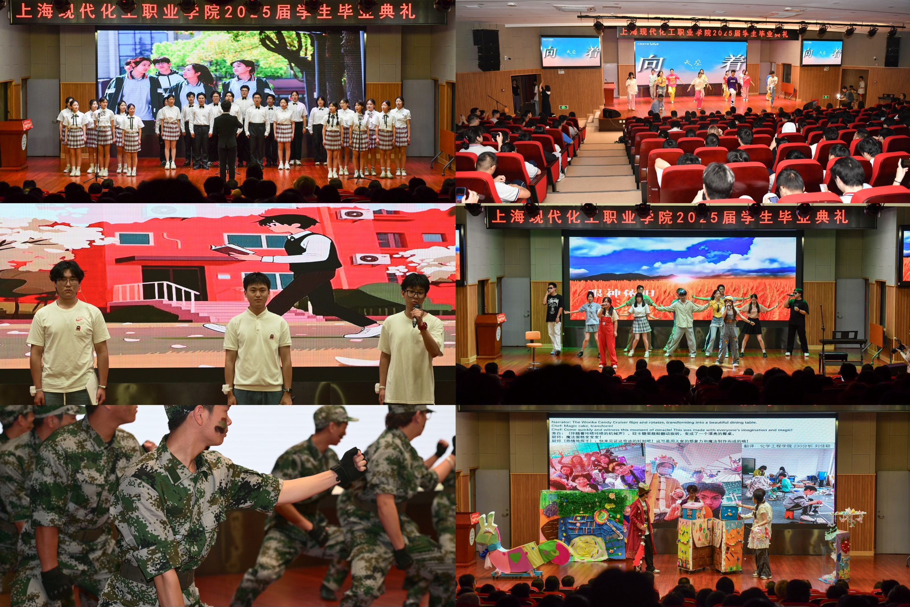 毕业典礼上,文艺表演精彩纷呈,为毕业生们献上了一场视听盛宴。校艺术团以活力四射的开场舞蹈《追晚霞》点燃全场气氛。智能制造学院与应急管理学院联袂演绎的毕业歌曲串烧《麦田童画·晴空絮语》,唱出了离别的惆怅与对未来的憧憬。斩获第46届世界头脑奥林匹克大赛国赛一等奖的队伍,带来了充满奇思妙想的表演《书中的美食》,展现了同学们的创新思维。军事理论社团的同学们以铿锵有力的步伐和飒爽英姿,进行了主题为“扬军魂之姿,护平安校园”的精彩展示,诠释了新时代青年的使命担当。我校海鸥大学生理论宣讲团用深情的情景化诗朗诵《龙胜路1097号的日子》,勾起了大家对校园生活的美好回忆。在校合唱团演绎的《再见》的悠扬歌声中,毕业生们互道珍重,依依惜别,也满怀期待地展望未来重逢的时刻。