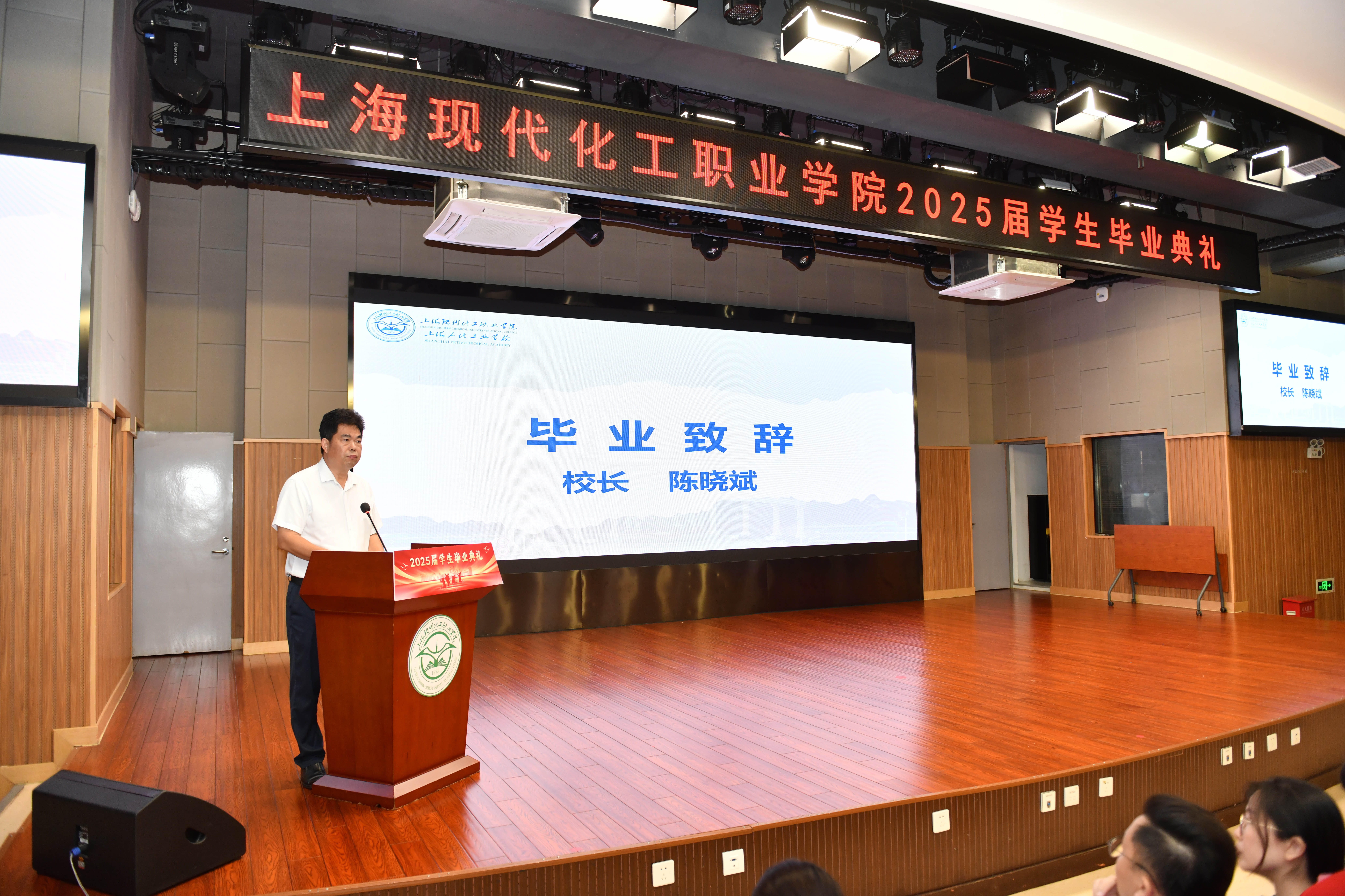 高炬代表学校向全体毕业生致以亲切的问候,向获得表彰奖励的优秀毕业生致以热烈的祝贺。他特别提到,本届毕业生是上海石化工业学校“最后一届”毕业生,这赋予了他们一份独特的历史印记。针对即将开启新篇章的毕业生,高炬提出三点殷切期望:首先,希望同学们能树立并坚定自己的理想信念,努力成为勇于担当、积极贡献社会的人;其次,希望同学们不忘初心,将报效祖国的情怀融入日常,做在平凡岗位上也能用心追梦、不懈奋斗的实干家;最后,希望同学们永远保持对知识的热情,做终身学习、不断进步的人。