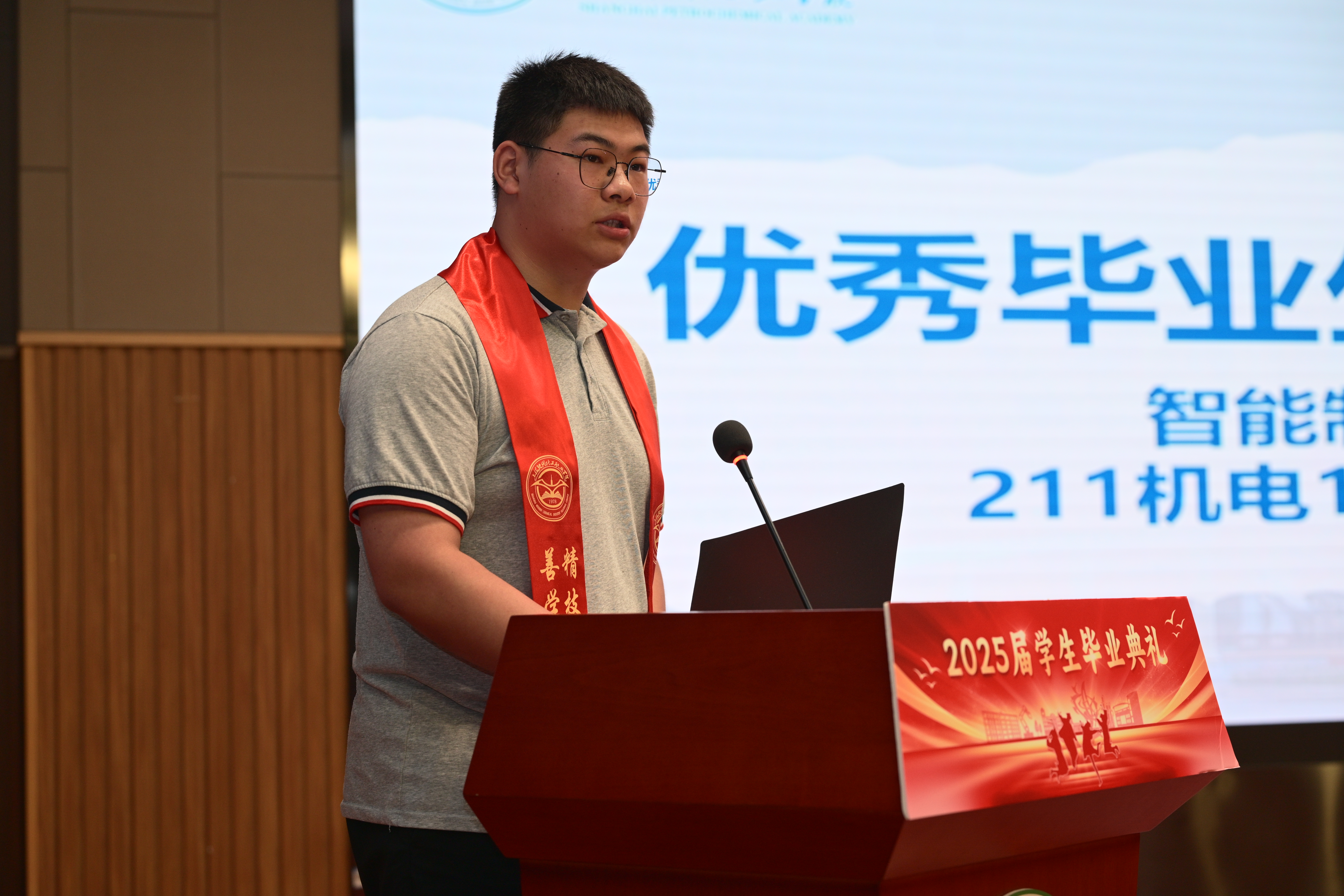 来自智能制造学院211机电01班的优秀毕业生代表陆俊杰分享了他在这片沃土上的成长感悟。他的话语中,有对母校的深情眷恋,有对师长的真挚感谢,更有对未来的坚定信念与美好展望,引发了在座每位毕业生心中的共鸣。