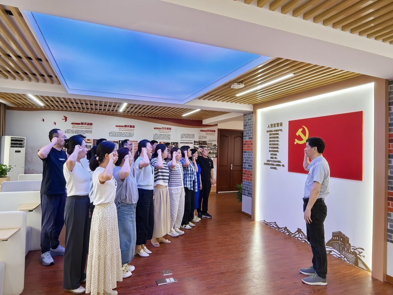 活动最后,全体党员在支部书记王峥崎的领誓下,庄重地重温入党誓词,在铿锵有力的宣誓声中,大家回顾了入党初心,感受到了党组织的强大凝聚力,进一步增强了归属感和使命感。