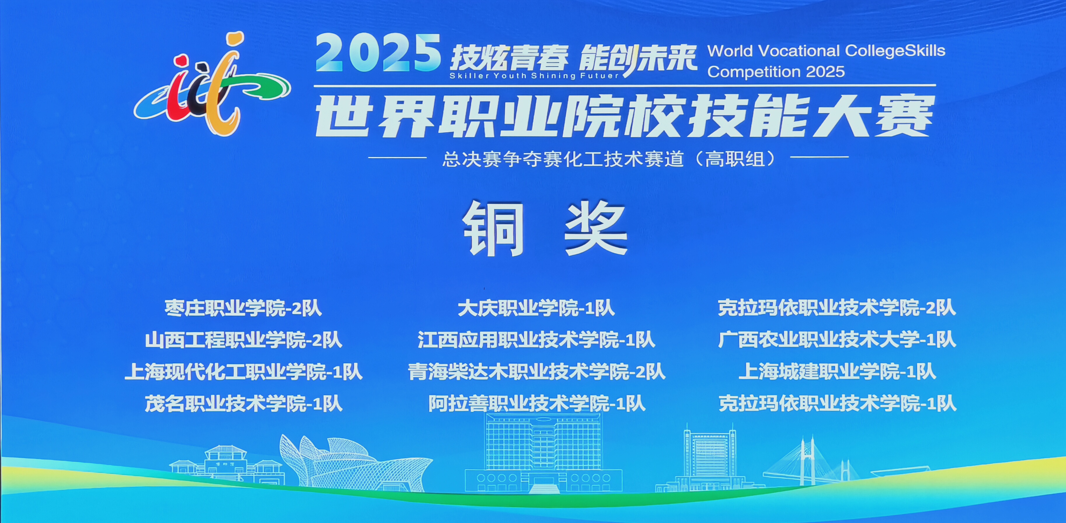 8月30日,2025 年世界职业院校技能大赛总决赛争夺赛化工技术赛道(高职组)圆满落幕。作为职业教育领域极具影响力的赛事之一,本次化工技术赛道赛事分别在东营职业学院、枣庄职业学院两大赛场同步开展,吸引了来自上百所优秀参赛队伍同台竞技。我校化学工程学院派出的2个参赛队在比赛中脱颖而出,分别荣获银奖、铜奖。