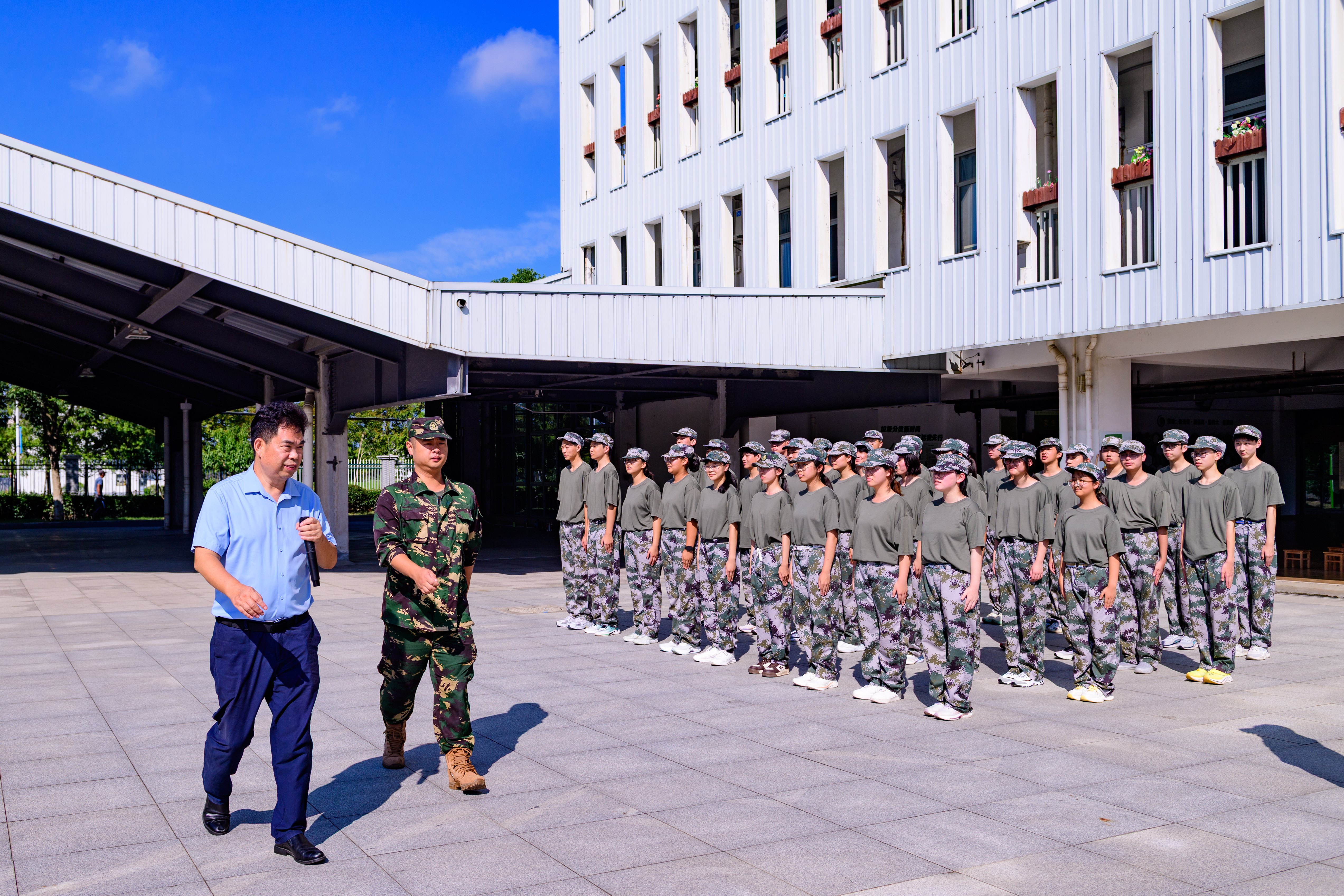 9月12日上午,2025级五年一贯制新生军训会操暨结营仪式在上海市青少年实践活动金山基地举行。校长陈晓斌、副校长严小丽以及学生条线相关部门负责人出席仪式。