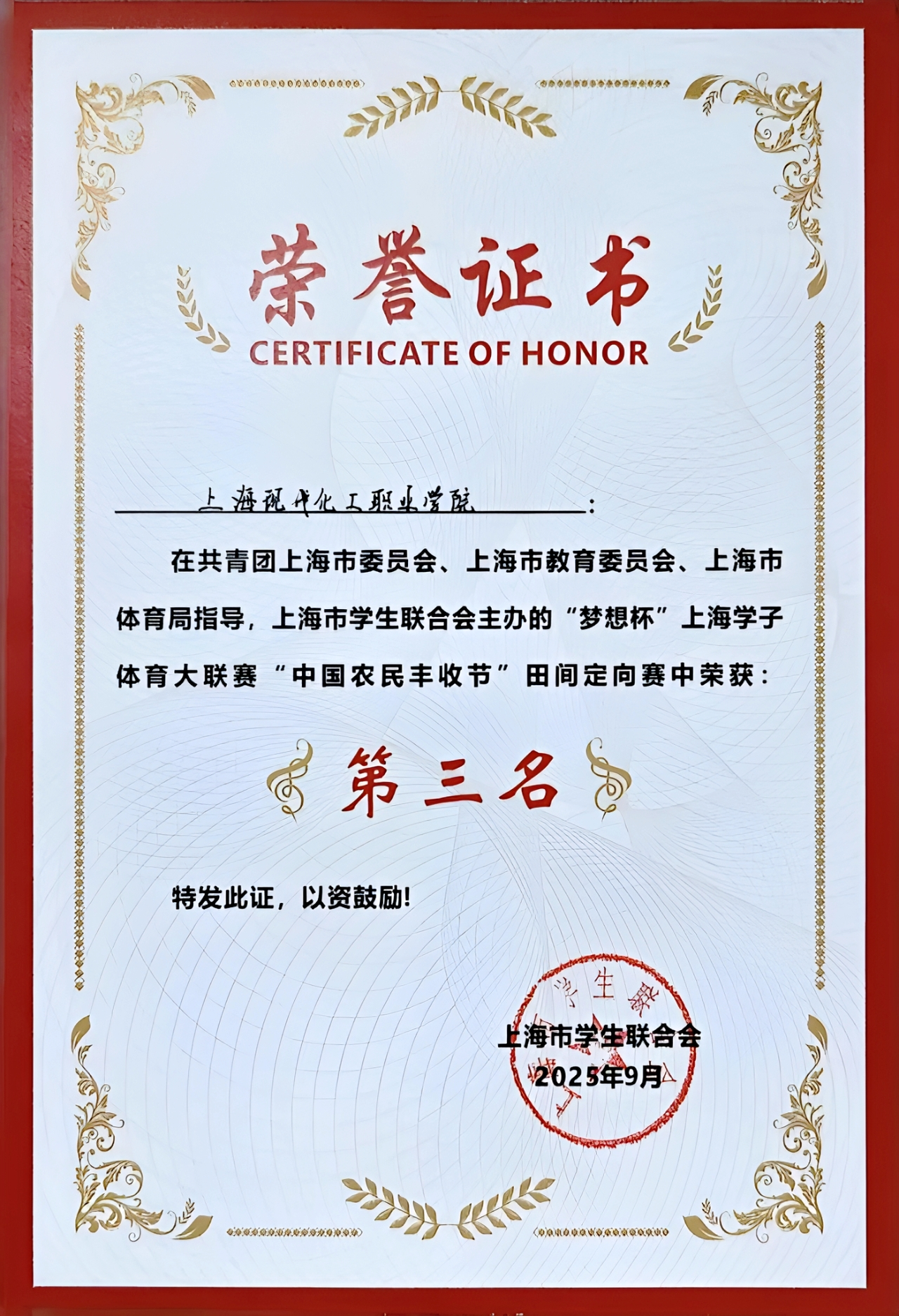 9月20日,“梦想杯”上海学子体育大联赛“中国农民丰收节”田间定向赛在上海农林职业技术学院实训基地火热开赛。本次活动由共青团上海市委员会、上海市教育委员会、上海市体育局指导,上海市学生联合会主办,上海农林职业技术学院承办。赛事共汇聚上海40所高校的青春力量,广大青年学子以农耕实践为媒,共赴一场劳动与成长的盛宴。